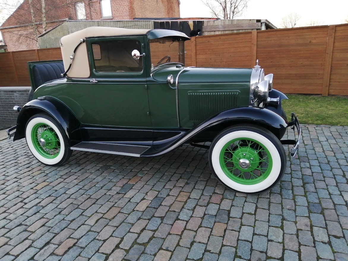 Ford A van 1930 model Sport Coupé in uitzonderlijke goede staat en in twee tinten groen gespoten, met verstelbare bank ( Mother in Law seat).